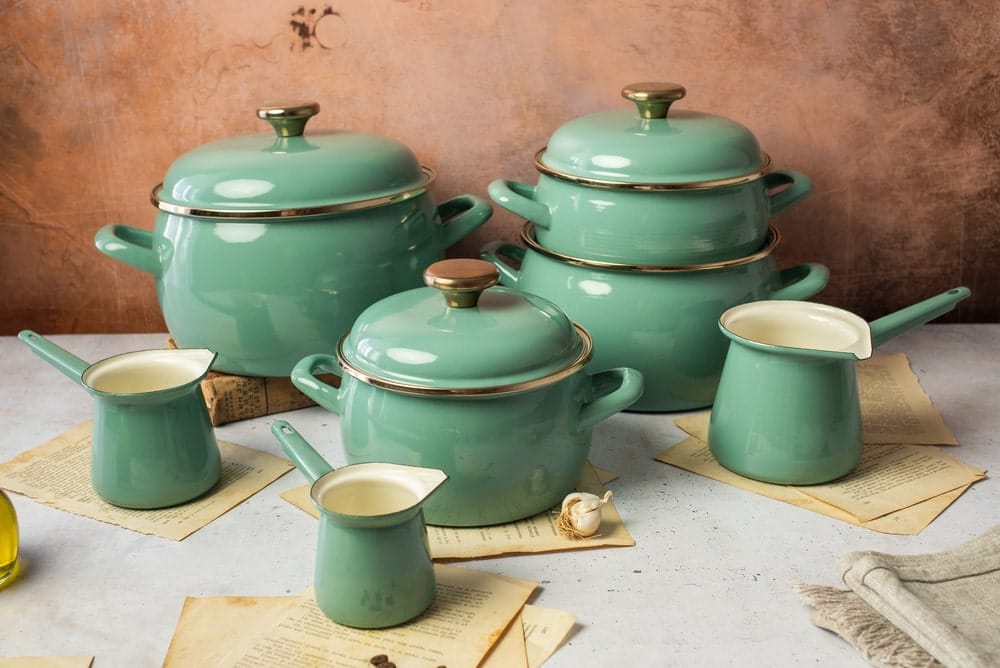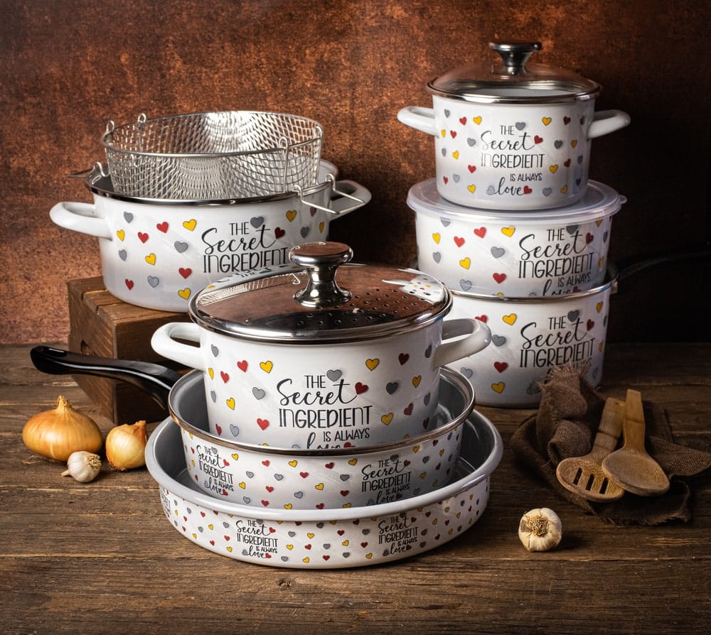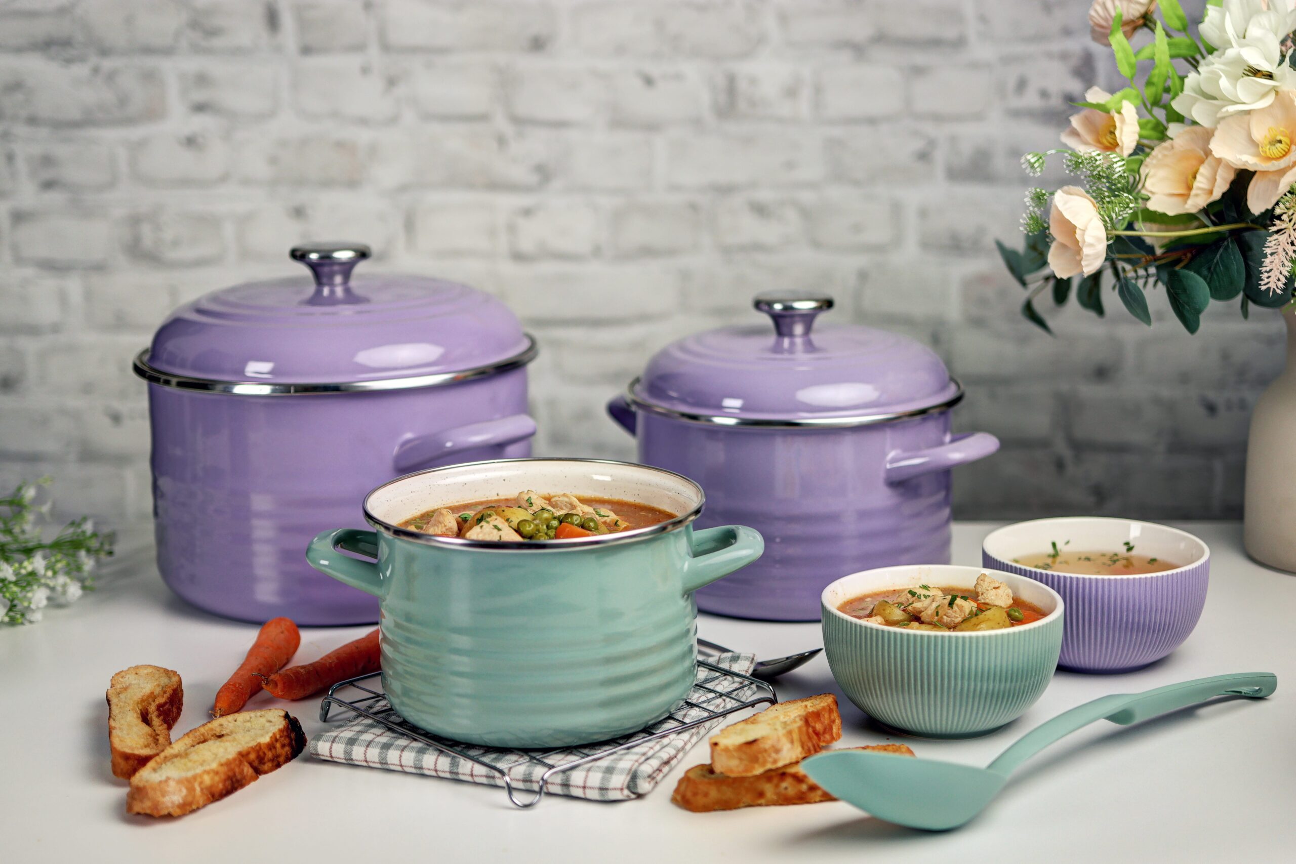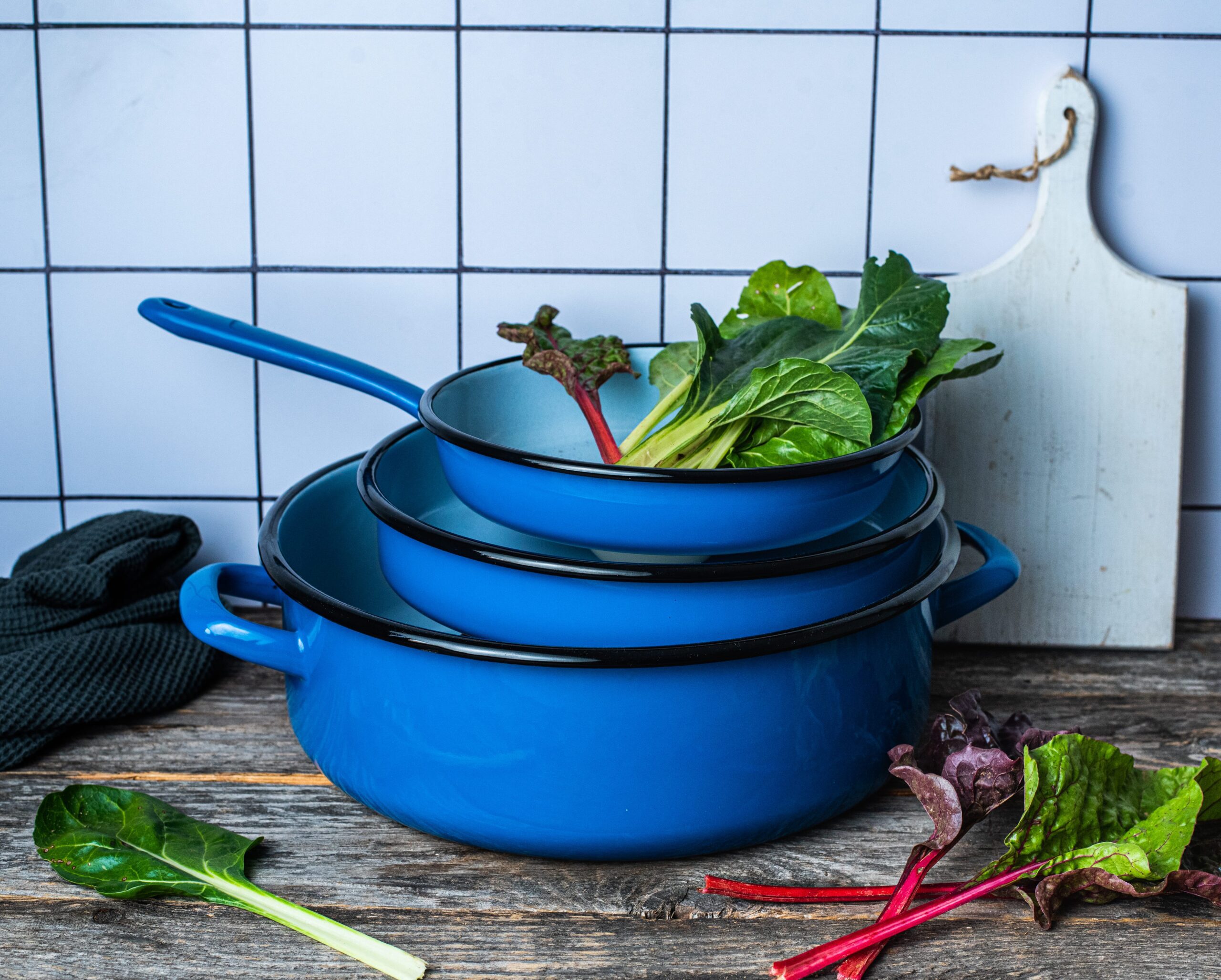 - Trwałe, bezpieczne naczynia emaliowane wysokiej jakości