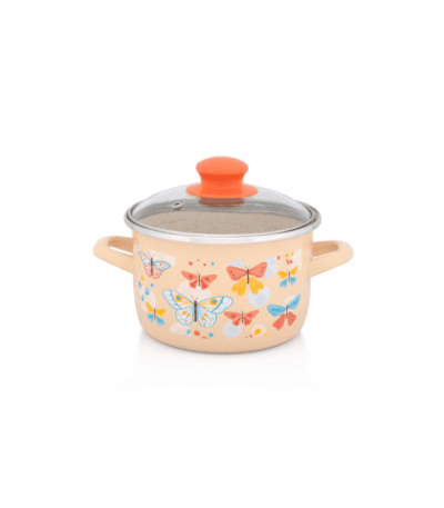 Garnek emaliowany 16 cm 2.0L ze szklaną pokrywką, brzoskwiniowy, Butterfly