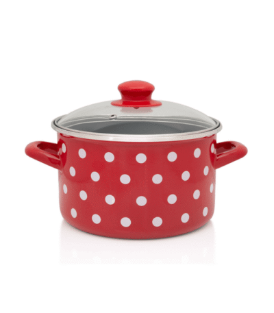 Garnek emaliowany ze szklaną pokrywką, 22 cm 5.0l, czerwony, Dots on red