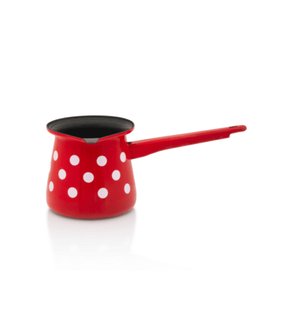 Klasyczny tygielek emaliowany na 4 kawy, 0.4L, czerwony, Dots on red
