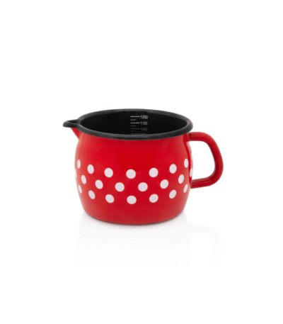 Klasyczny wypukły kubek emaliowany z dzióbkiem, 12 cm 1.3L, czerwony, Dots on red