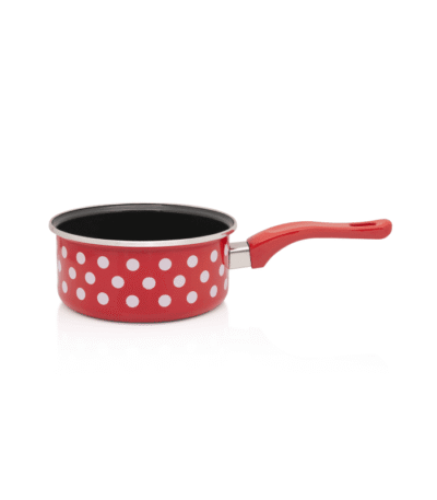Rondel emaliowany z dzióbkiem, 16 cm 1.6L, czerwony, Dots on red