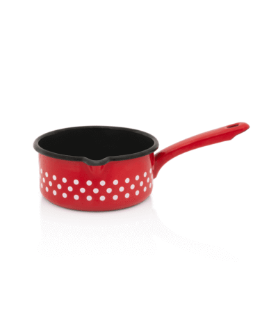 Rondel emaliowany z dzióbkiem, 14 cm 1.0L, czerwony, Dots on red