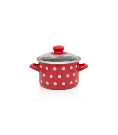 Garnek emaliowany ze szklaną pokrywką, 14 cm 1.5l, czerwony, Dots on red
