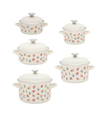 Zestaw 5 garnków emaliowanych Flowers – 1,5 l + 2 l + 2,75 l + 4 l + 6,75 l