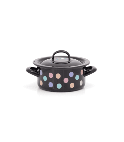 Niski garnek emaliowany 16 cm 1,5 l z pokrywką, czarny, Pastel Dots