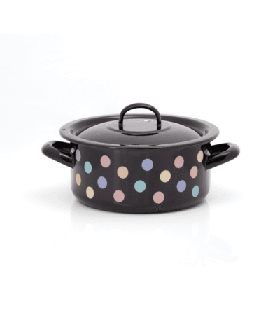 Niski garnek emaliowany 20 cm 2,8 l z pokrywką, czarny, Pastel Dots