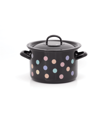 Garnek emaliowany 18 cm 3 l z pokrywką, czarny, Pastel Dots