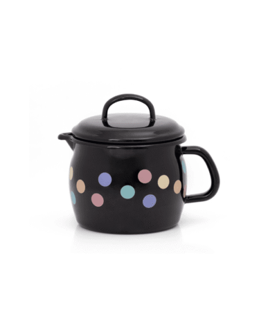 Klasyczny wypukły kubek emaliowany z dzióbkiem 12 cm 1,3 l, czarny, Pastel Dots
