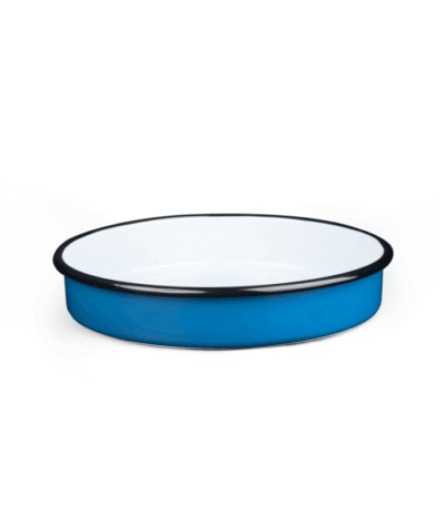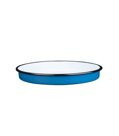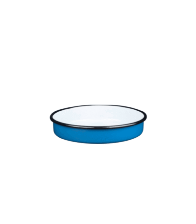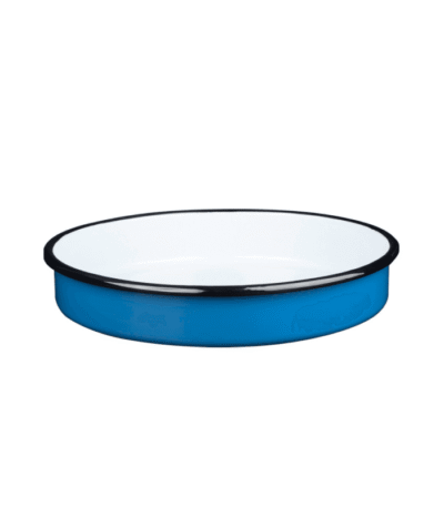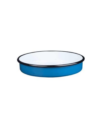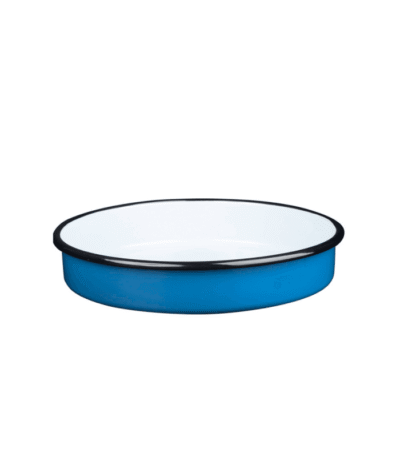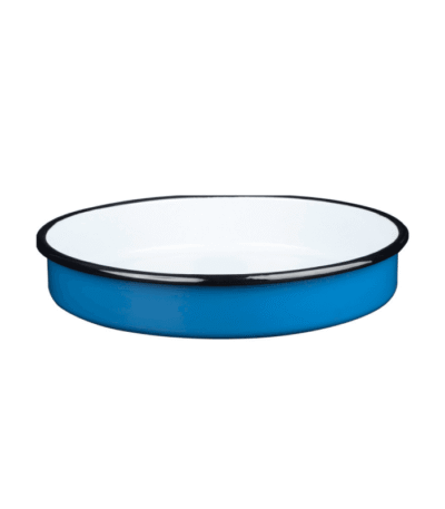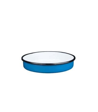 Okrągła forma emaliowana, średnica 28 cm, wysokość 5.5 cm, niebieska, kolekcja Plava