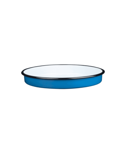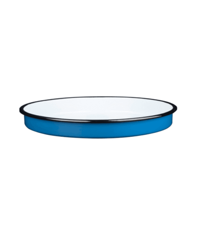 Niska okrągła forma emaliowana, średnica 36 cm, wysokość 3.5 cm, niebieska, kolekcja Plava