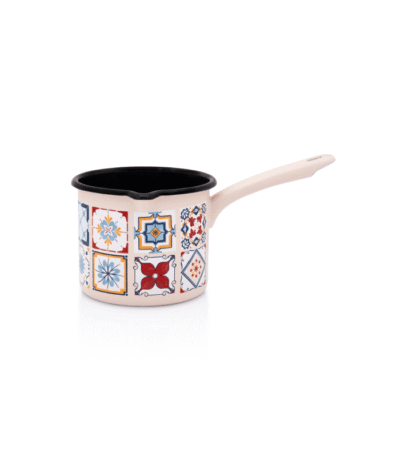 Prosty kubek emaliowany z długą rączką, 12 cm 1.2L, kremowy, Porto