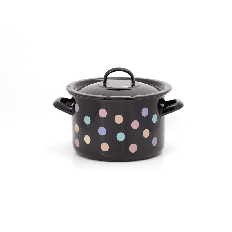 Garnek emaliowany 18 cm 3 l z pokrywką, czarny, Pastel Dots