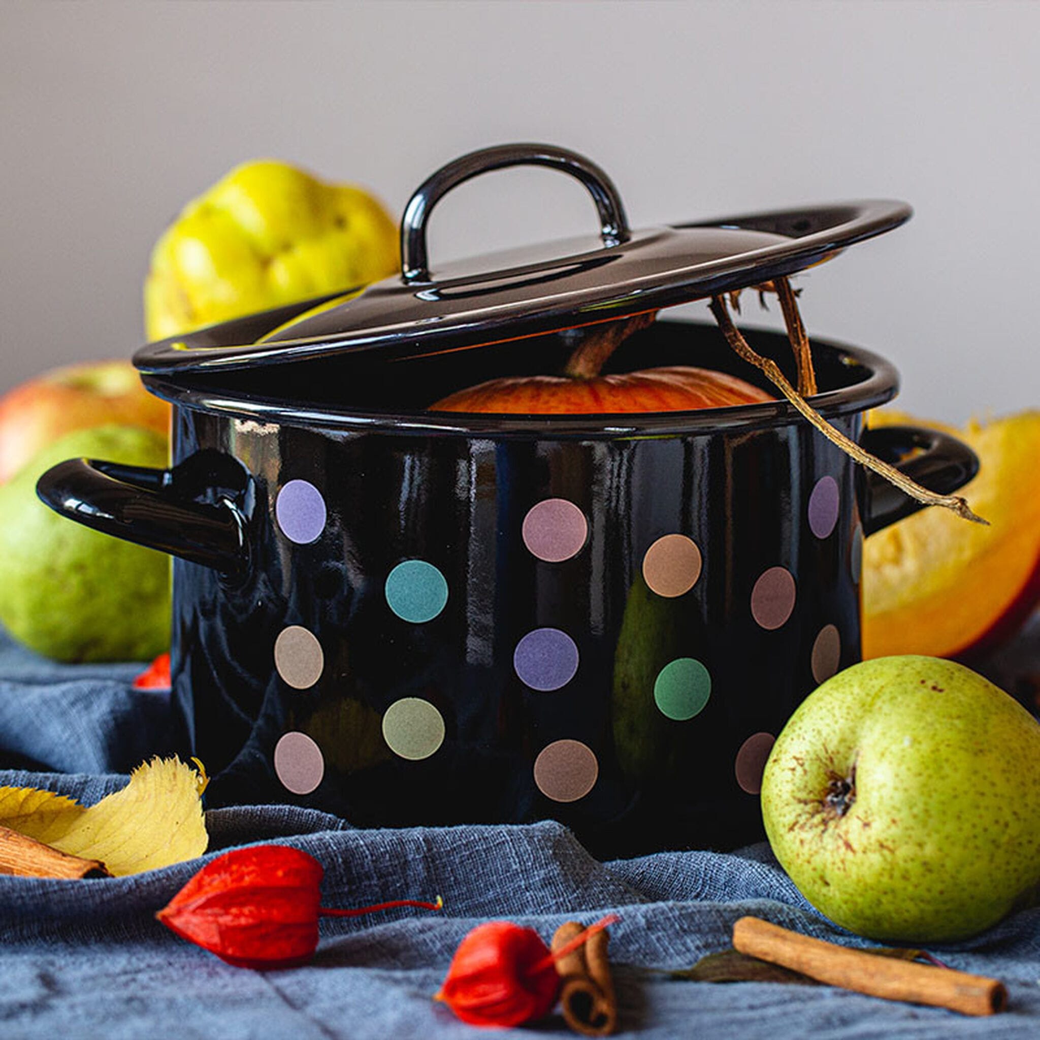 Napisz pierwszą opinię o „Garnek emaliowany 18 cm 3 l z pokrywką, czarny, Pastel Dots”