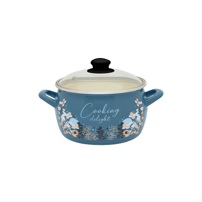 Odkryj wszechstronność i urok naszego garnka emaliowanego z kolekcji Cooking Delight. O średnicy 20 cm i pojemności 4.2 litra, ten garnek jest idealny do gotowania obiadów dla całej rodziny. Jego piękny, niebieski kolor oraz delikatny roślinny wzór dodają elegancji każdej kuchni, a kremowe wnętrze jest nie tylko estetyczne, ale także funkcjonalne dzięki nieprzywierającej powłoce.