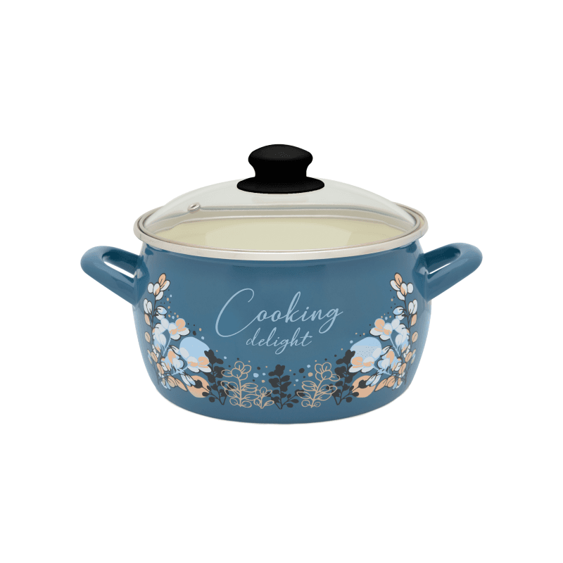 Garnek emaliowany 24 cm 7.5 L, ze szklaną pokrywką, niebieski, Cooking Delight