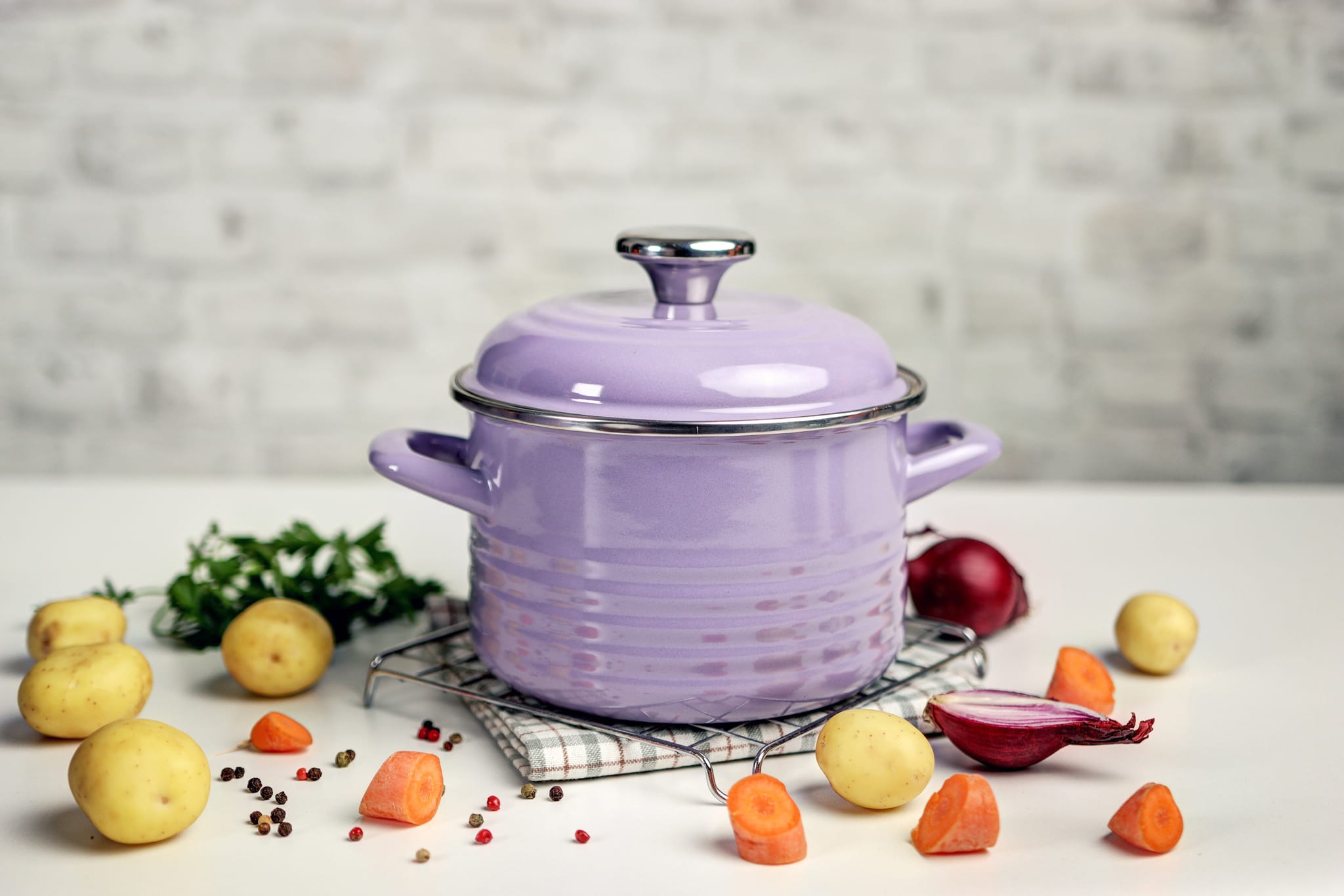 Garnek emaliowany z emaliowaną pokrywką 16 cm, 2 l, jasnofioletowy, kolekcja Waves