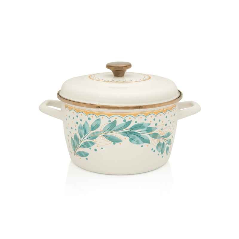 Garnek został wykonany z wysokiej jakości emalii, która nie tylko zapewnia trwałość, ale także równomierne rozprowadzanie ciepła, co czyni go idealnym do gotowania wszelkiego rodzaju potraw. Jest łatwy do czyszczenia, odporny na zarysowania i doskonale sprawdzi się zarówno w nowoczesnych, jak i tradycyjnych wnętrzach. Dzięki swojemu eleganckiemu designowi oraz funkcjonalności, ten garnek z pewnością stanie się jednym z ulubionych elementów Twojej kuchni.