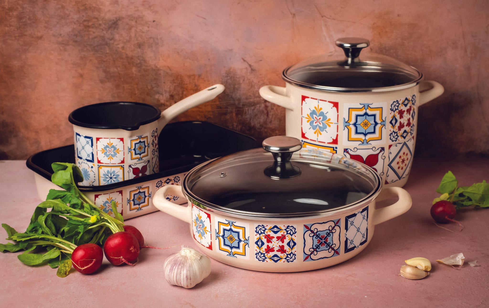 Garnek emaliowany 16 cm, 1.9L kolekcji Porto o średnicy 16 cm i pojemności 1.9 litra to doskonałe połączenie funkcjonalności i wyjątkowego, iberyjskiego stylu. Patchworkowe wzory inspirowane portugalskimi azulejos nadają naczyniu unikalny charakter, który pasuje zarówno do nowoczesnych, jak i klasycznych wnętrz. Emaliowana powłoka jest gwarancją zdrowego gotowania, ponieważ nie reaguje z żywnością, zachowując jej smak, kolor i zapach. Szklana pokrywka pozwala na wygodne obserwowanie procesu gotowania, a jego niewielka pojemność idealnie nadaje się do przygotowywania mniejszych porcji potraw.