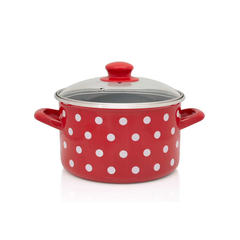 Większa kawiarka o pojemności 0.7 litra, która pomieści aż 7 filiżanek kawy, jest doskonałym wyborem na wspólne poranki spędzone z rodziną lub przyjaciółmi. Jej klasyczny wygląd w czerwonej tonacji z białymi kropkami dodaje kuchni ciepła i nostalgii, przywołując wspomnienia z domowych kuchni. Kawa przygotowana w tej emaliowanej kawiarce ma niepowtarzalny smak i aromat, a emalia zapewnia, że napój pozostaje wolny od jakichkolwiek niechcianych reakcji. Idealna na każdą okazję, gdy chcesz delektować się chwilą.