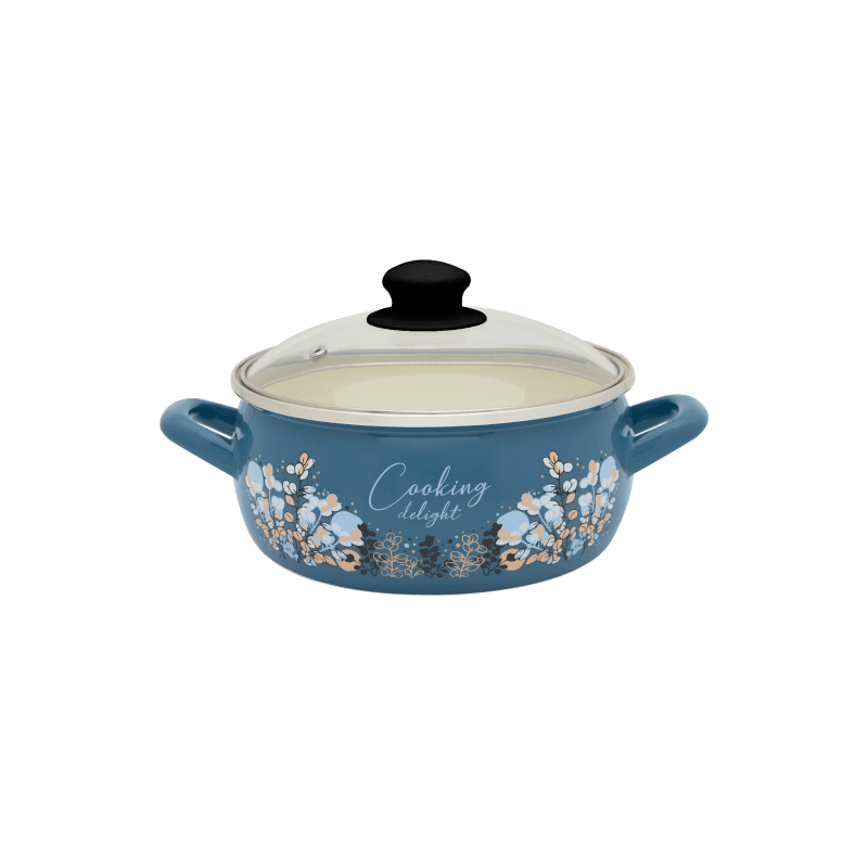 Odkryj wszechstronność i urok naszego garnka emaliowanego z kolekcji Cooking Delight. O średnicy 20 cm i pojemności 2.9 litra, ten garnek jest idealny do gotowania obiadów dla całej rodziny. Jego piękny, niebieski kolor oraz delikatny roślinny wzór dodają elegancji każdej kuchni, a kremowe wnętrze jest nie tylko estetyczne, ale także funkcjonalne dzięki nieprzywierającej powłoce.
