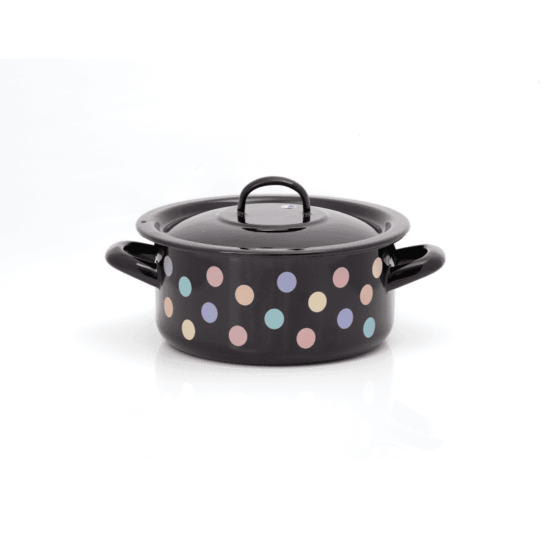 Niski garnek emaliowany 20 cm 2,8 l z pokrywką, czarny, Pastel Dots