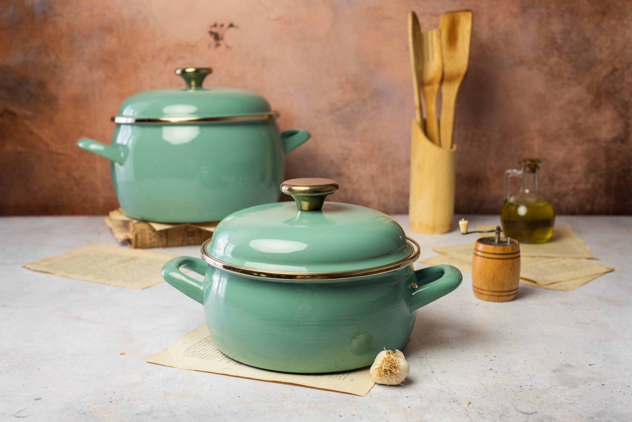 Nasz niski garnek emaliowany o średnicy 18 cm i pojemności 2,4 litra z kolekcji Mint to doskonałe rozwiązanie do przygotowywania codziennych posiłków dla kilku osób. Jego miętowy kolor wprowadza do kuchni powiew świeżości, a najwyższa jakość europejskiej emalii zapewnia trwałość i odporność na zarysowania. Garnek jest kompatybilny ze wszystkimi typami kuchenek, w tym indukcyjnymi, a możliwość mycia w zmywarce ułatwia utrzymanie go w czystości. Niski profil i solidna pokrywka gwarantują szybkie gotowanie oraz zachowanie pełni smaku i aromatu potraw.