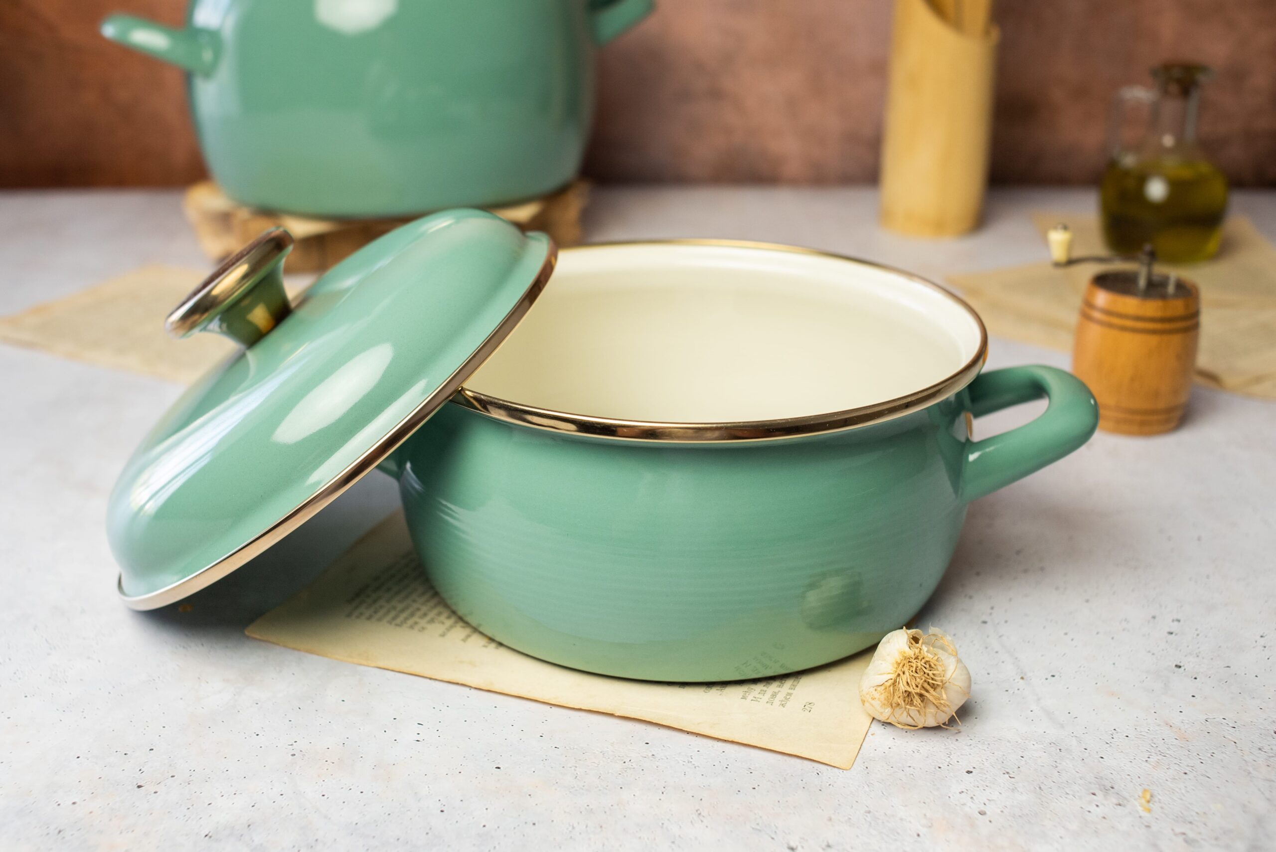 Niski garnek emaliowany z pokrywką 18 cm 2,4 l, miętowy, kolekcja Mint