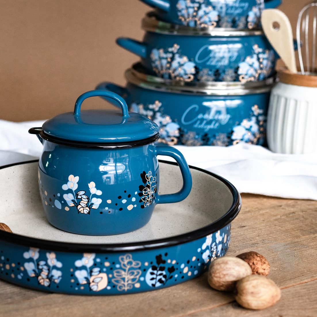 Wykonane z wysokiej jakości emalii, gwarantuje równomierne rozprowadzenie ciepła, co jest kluczowe dla osiągnięcia idealnych wyników w pieczeniu. Niebieska powierzchnia zdobiona delikatnymi, roślinnymi wzorami nie tylko pięknie się prezentuje, ale także czyni z tego naczynia idealne rozwiązanie do serwowania potraw bezpośrednio na stół, dodając elegancji każdemu posiłkowi.
