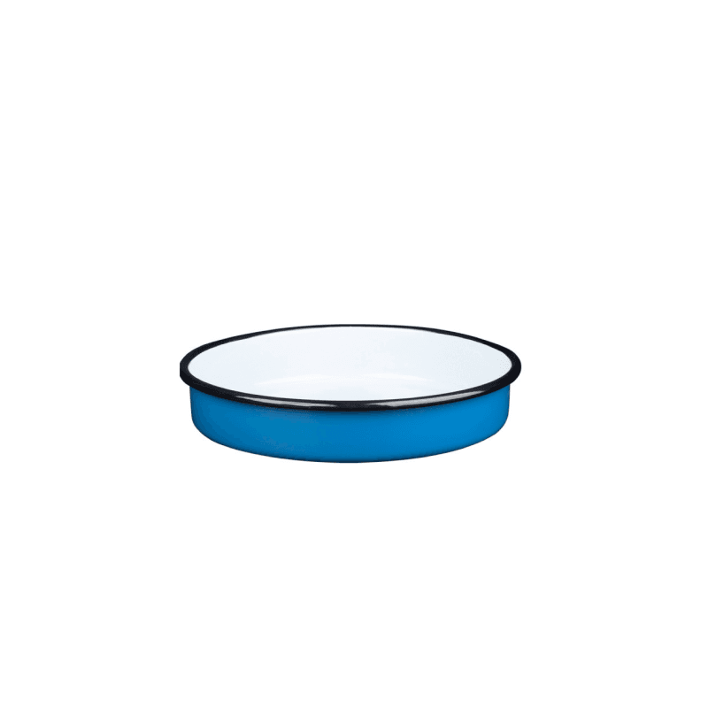Okrągła forma emaliowana, średnica 28 cm, wysokość 5.5 cm, niebieska, kolekcja Plava