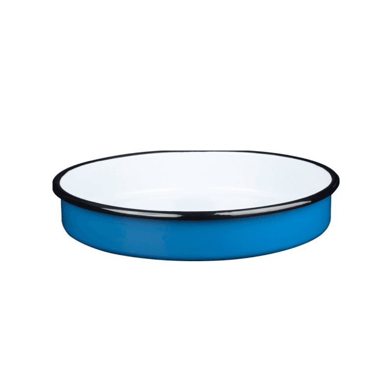 Okrągła forma emaliowana, średnica 40 cm, wysokość 6.8 cm, niebieska, kolekcja Plava
