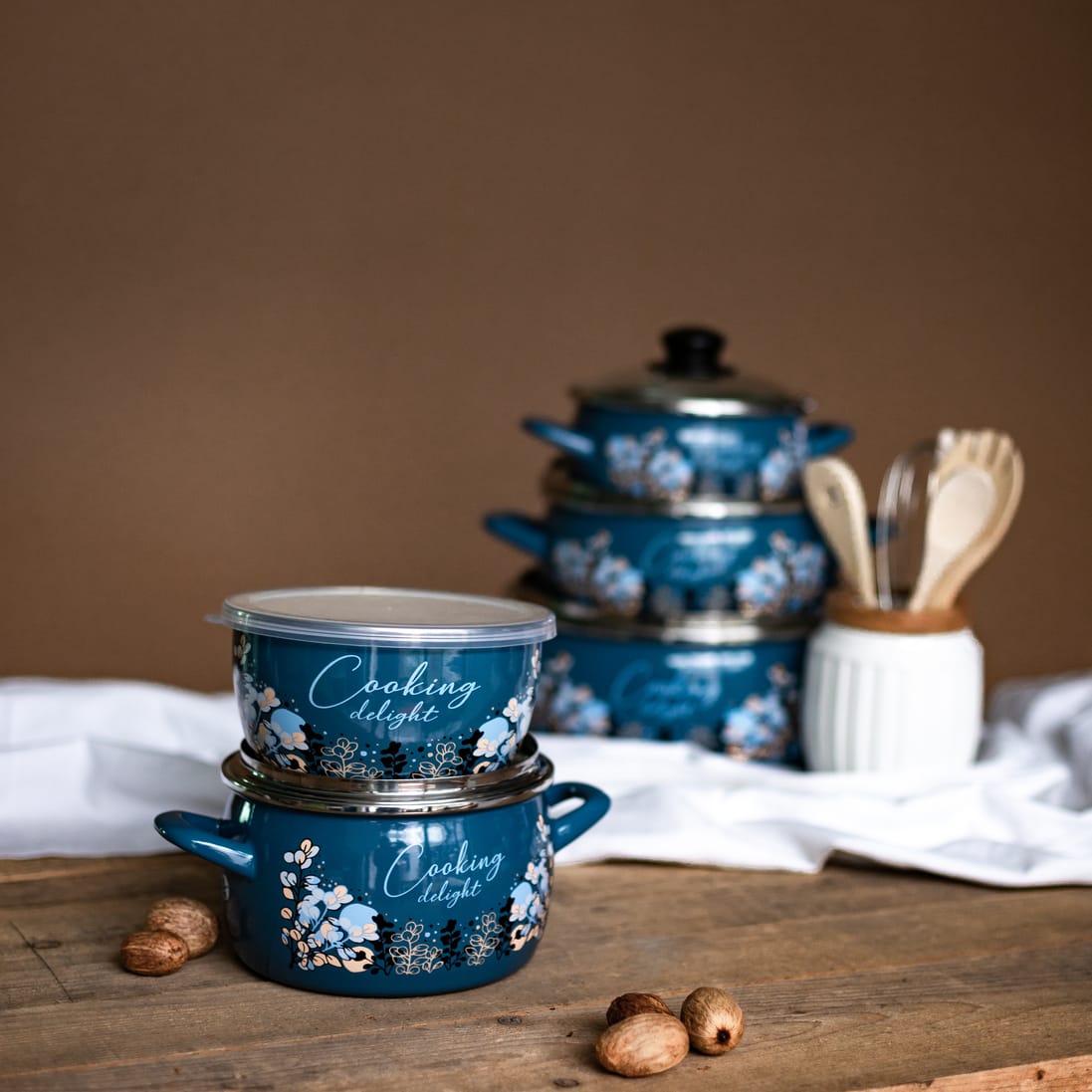 Pojemnik emaliowany z plastikową porkywką 16 cm 1.7 L, niebieski, Cooking Delight