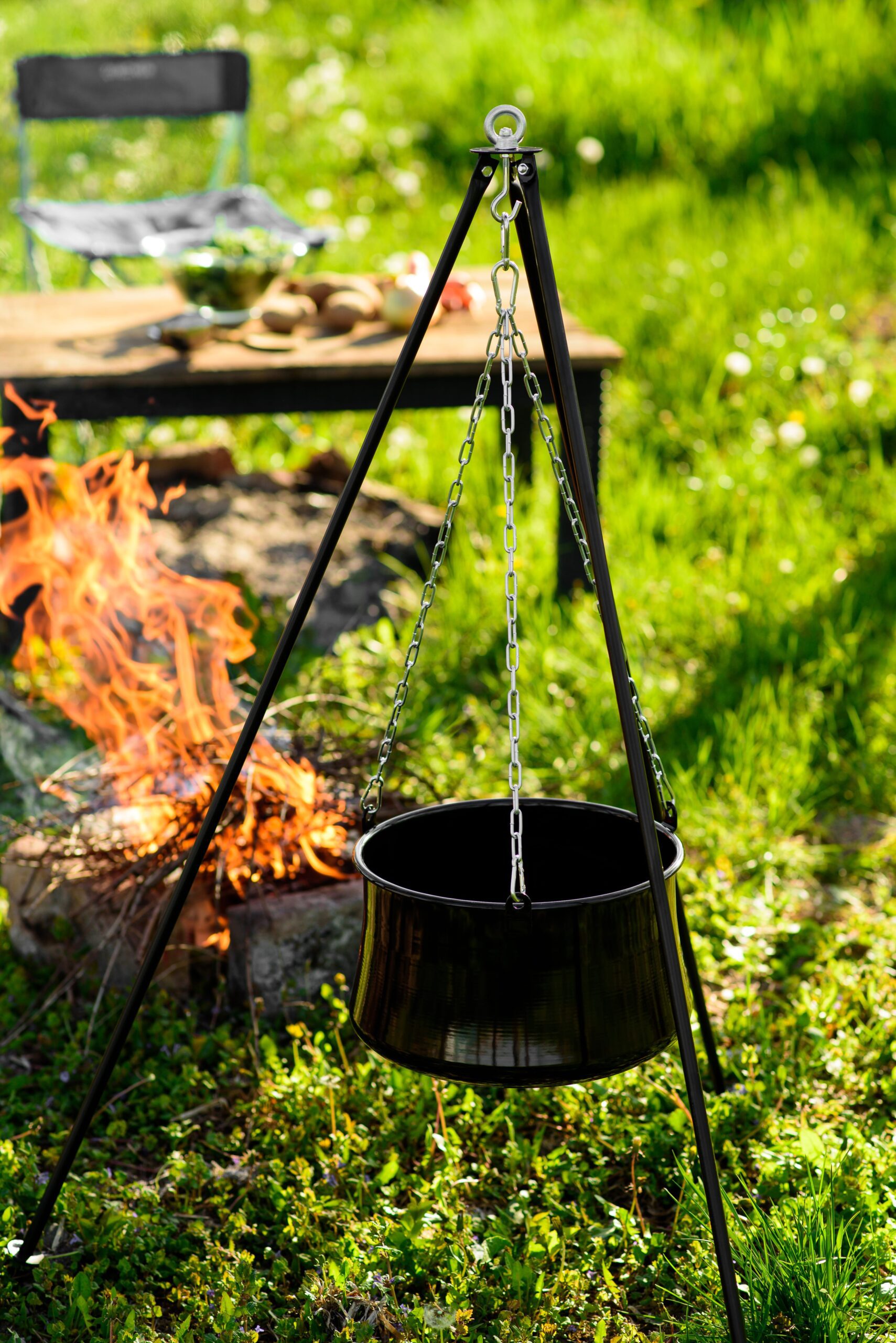 Stelaż uniwersalny do kociołka na ognisko, metalowy, czarny