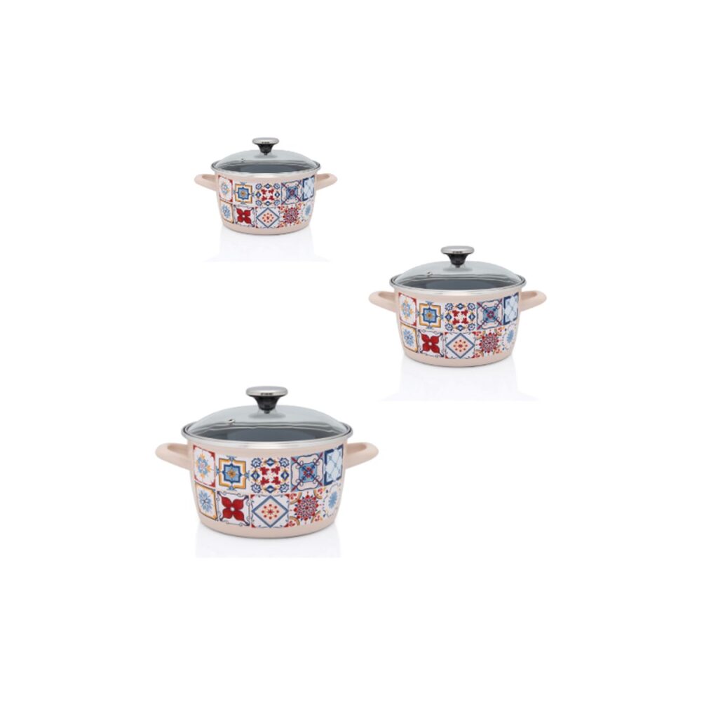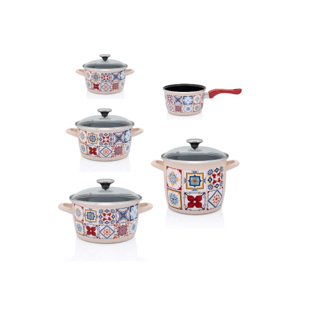 Zestaw 5 garnków emaliowanych i patelni Mokka - 2,2 l + 3,1 l + 4,2 l + 5,4 l + 7,5 l + patelnia 24 cm