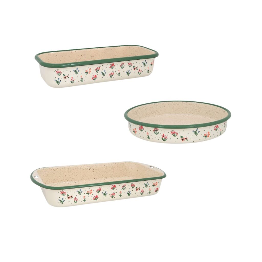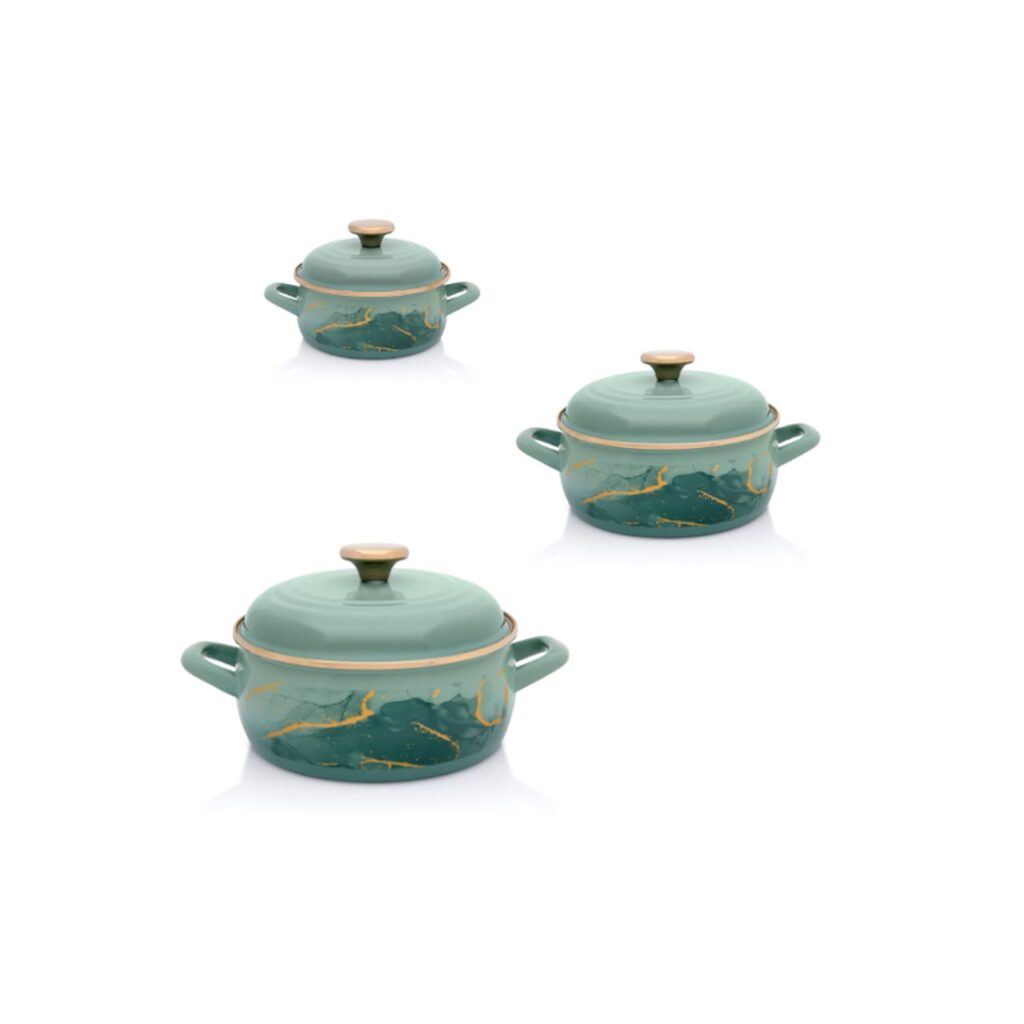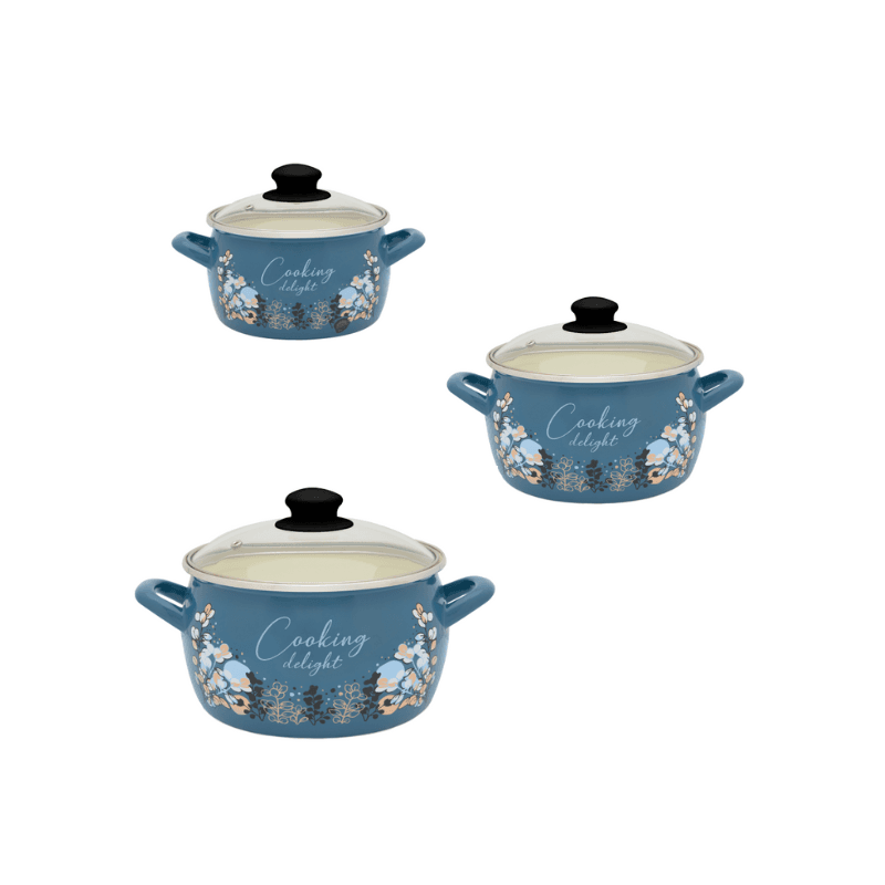 Zestaw 2 niskich garnków emaliowanych i patelni Mokka - 2,4 l + 3,8 l + patelnia 24 cm