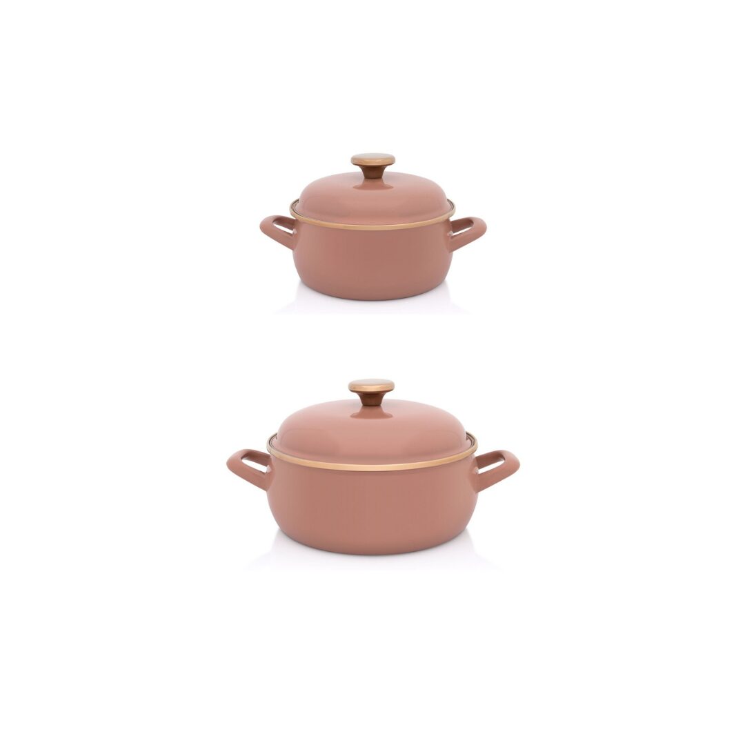 Zestaw 2 niskich garnków emaliowanych Mokka – 2,4 l + 3,8 l