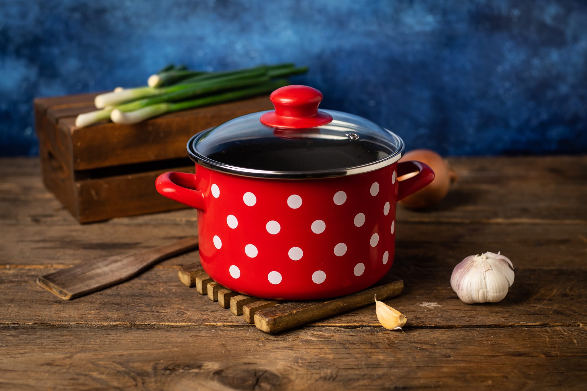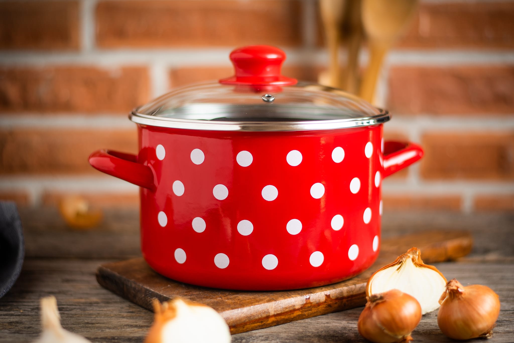 Wyrazisty czerwony kolor zdobiony białymi kropkami sprawia, że zestaw garnków emaliowanych Dots on Red staje się nie tylko praktycznym, ale i dekoracyjnym elementem kuchni.