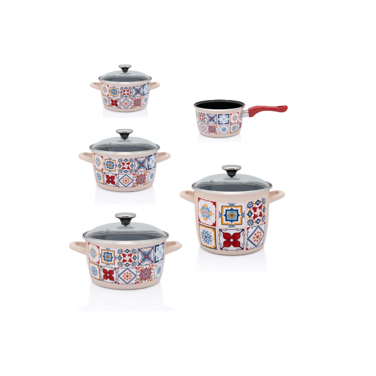 Zestaw garnków emaliowanych Porto – 1.9 l + 3.5 l + 5.1 l + 6 l + rondel 1.9 l