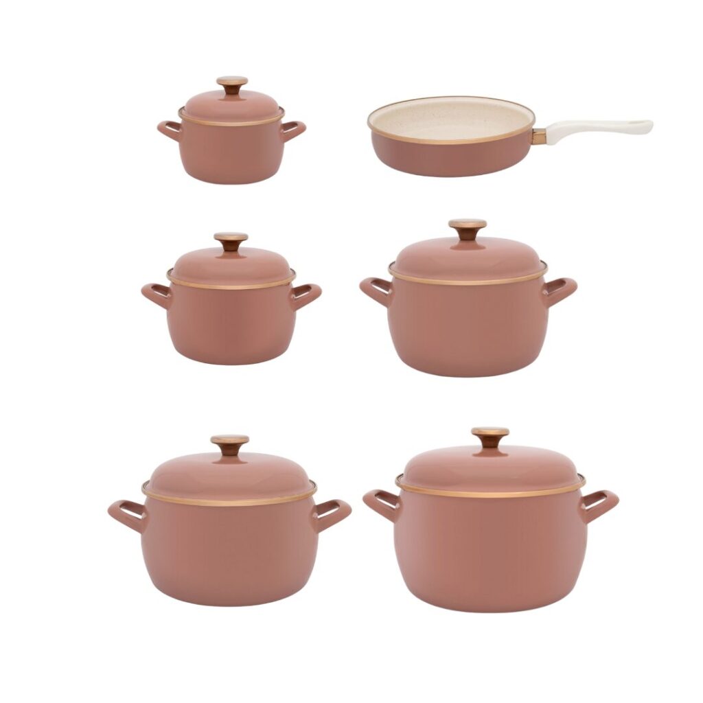 Rozszerzony zestaw garnków emaliowanych Porto to idealna propozycja dla osób, które cenią nie tylko funkcjonalność, ale również wyjątkowy, dekoracyjny styl w kuchni.