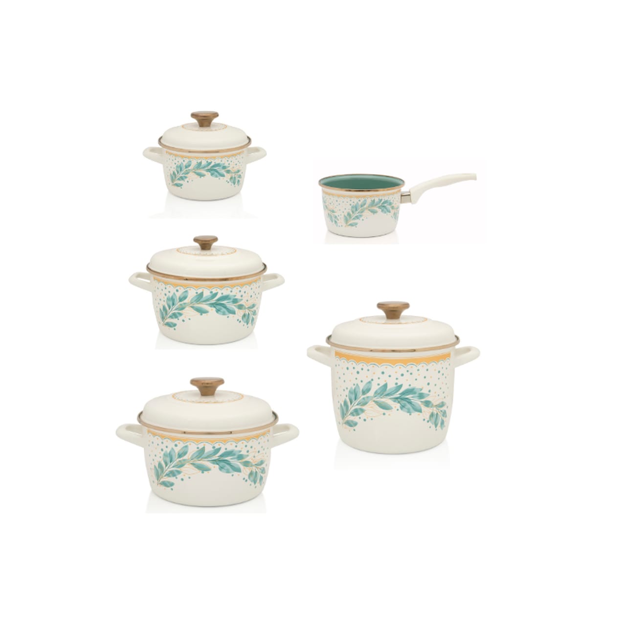 Zestaw naczyń emaliowanych Green Line – 1.9 l + 3.5 l + 6 l + 5.1 l + rondel 1.9 l